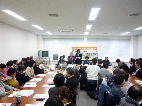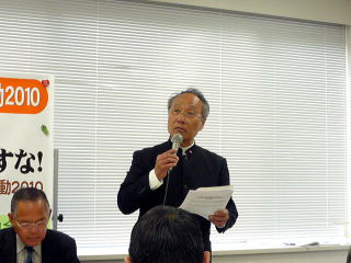 堺市議会議員の中井国芳さん(民主党・市民連合)からは、堺市での意見書可決に向けた経過を説明しながら、意見書採択のために何が必要か、議員と市民運動との信頼関係の重要さを語られました。