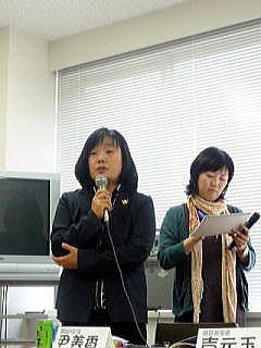 「議員の会ではいろんな努力をしていきます。日本の国会議員のみなさんと交流・協力して、「慰安婦」問題の解決を図っていきたいと考えています。そのような思いを持っていたところ、日本でも戦後補償を解決するための議連が4月に発足したと聞き、本当に涙が出るくらい、跳び上がりたいくらい嬉しくてたまりませんでした。」