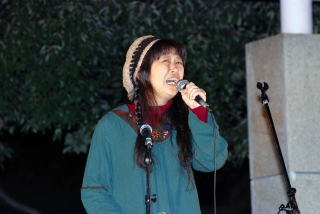 続いて、ゲストのはるまきちまきさん、安聖民(アンソンミン)さん、志遠(チウォン)さんの連帯の思いのこもった演奏は、冬の夜空に響き渡り、心に沁み入るものでした。