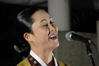 | はるまきちまきさん(左)は、特に3曲目に歌った、ちまきさんの代表曲で弱者への賛歌でもある「ちいさきものたちへ」で、私たちの魂をグッとつかみ離しませんでした。 安聖民さん(中央)はアリランのメドレーを歌いました。安聖民さんのいう「心の中のアリラン峠」を越えていくハルモニたちの姿を彷彿とさせました。 志遠さん(右)は日本軍「慰安婦」被害者の人生を歌った「鎮魂歌」で、被害者の受けた被害とその後の人生の理不尽さを思い起こさせました。 ゲストのお3方とも、被害者への思いを込めた、感動的なステージでした。ありがとうございました。 |
