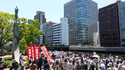 さらに、5月30日に大阪市議会で橋下市長問責決議案が可決されそうになると、なんと橋下市長と松井府知事は「選挙」をちらつかせて議員に圧力をかけ、可決を阻止するという暴挙に出たのです。これこそ、民主主義を破壊し市民や議会を愚弄する振舞いであり、維新の会の政治行動の本質を市民の前に明らかにしたと言えます。多くの市民の怒りに油を注いだ結果となっています。6月3日、橋下市長と松井知事は「沖縄の負担軽減のため」と称して、オスプレイの訓練を八尾空港で受け入れることを表明しました。橋下市長には、沖縄問題の本質がまったくわかっていないとしか言いようがありません。オスプレイなんかない社会を、戦争のない社会を、「慰安婦」被害者も私たちも望んでいるのです。