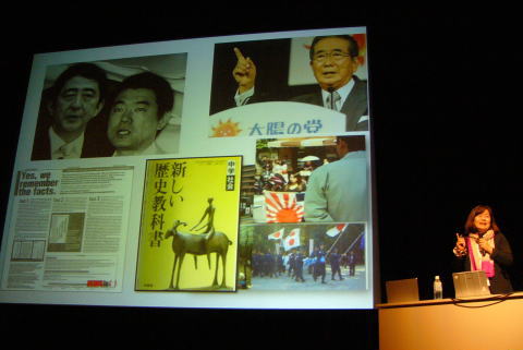 明るく未来を語る尹美香さん 安倍首相・橋下市長・石原代表の主張と在特会のヘイトスピーチは同根 |