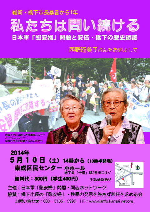 2014年5月10日維新・橋下市長暴言から1年 私たちは問い続ける