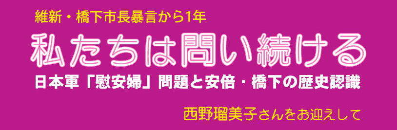 これからも、橋下市長、安倍首相、NHK籾井会長ら、女性の人権を踏みにじり、歴史を歪曲する公人の暴言を許さず、辞任を求める声をあげ続けていきます!