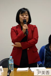 「私たちは1992年から阿媽たちを支援してきましたが、58人いた阿媽は、この17年の間に18人になってしまいました。今日もここに来られればよかったのですが、高齢のためそれもかないません。被害者達は最後に「ごめんなさい」という言葉を聞きたがっています。立法案を通過させ、歴史教科書を見直すことができるようしてください。」