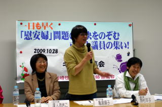 「この問題を解決しないならば、日本が同等な立場で東アジアに意見を述べることは不可能」(辻恵議員)
