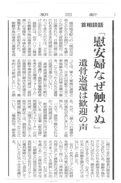 「政府と日本国民の論議により、『アジア国民基金』を設立して償い金と医療支援などを提供し、総理の手紙を送り被害者にお詫びと遺憾を表した」