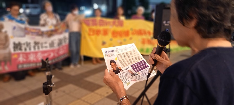 今もここに立つのは問題が解決していないからで、戦時性暴力根絶の闘いにつながり、連帯していきたい、希望をもち、希望をつくりだす活動をしていきたいと話しました。