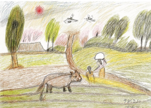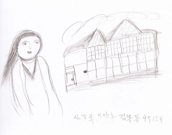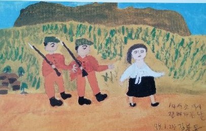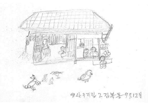 | 1926年 | 慶尚道梁山で生まれる ※絵画は金福童ハルモニが描かれたものです。 ![]() (梁山の我が家) ![]() (むかし) |