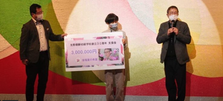 大阪生野朝鮮初級学校創立30周年事業に300万円の支援金が伝達されました。