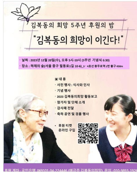 日本軍性奴隷被害者であり人権平和運動家である金福童ハルモニの生と意志を引き継ぐ「金福童の希望」は在日朝鮮学校学生の学業を支援するために奨学生を募集します。